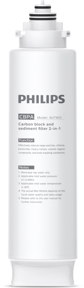 Фильтр 2 в 1 механической очистки. Первой ступенью является осадочный фильтр, улавливающий крупные частицы, такие как песок и ржавчина. Вторая ступень — угольный фильтр, снижающий содержание хлора, тяжелых металлов, летучих органических соединений, пестицидов.