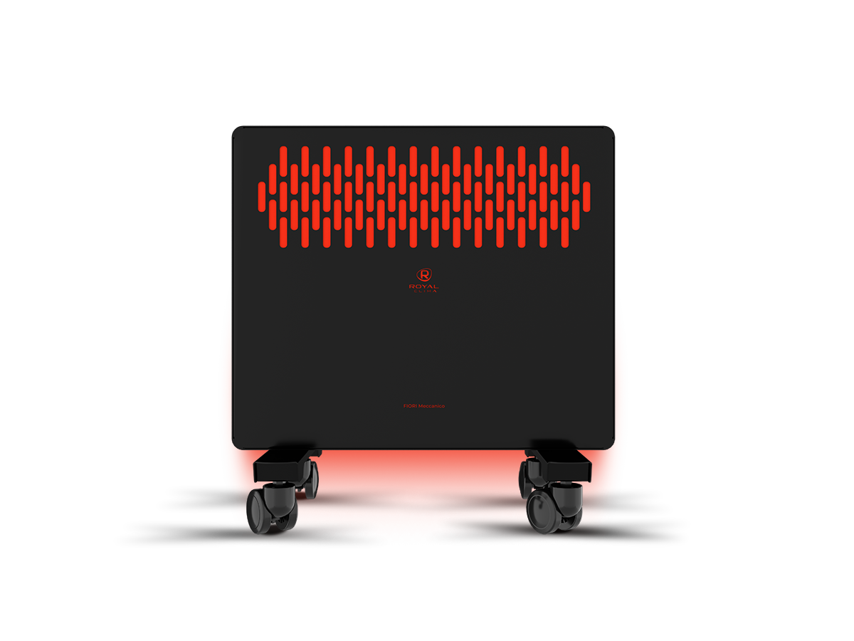 FIORI Meccanico обладает устойчивой конструкцией на колёсах. Механическая панель управления конвектора расположена на боковой части для комфортного и удобного использования. Возможна установка прибора на стену, все необходимое уже входит в комплектацию.