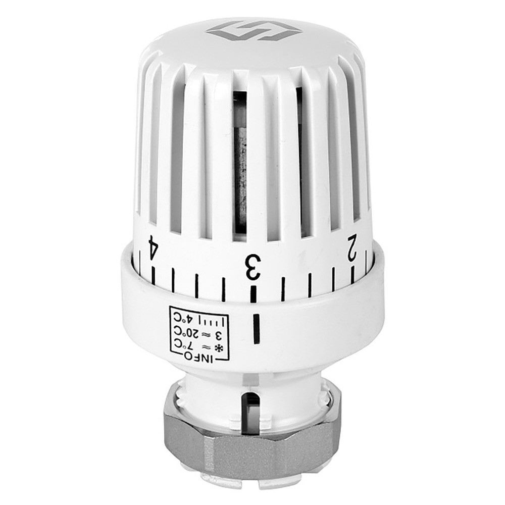 термоголовки. Сильфонная ёмкость термоголовки при изменении температуры воздуха воздействует на шток клапана, тем самым изменяя количество проходящего через отопительный прибор теплоносителя. Использование терморегуляторов позволяет автоматически поддерживать температуру воздуха в помещениях на заданном уровне с точностью до 1°С.