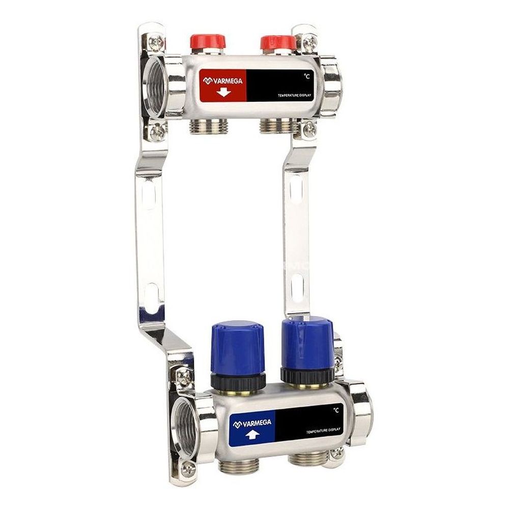 Коллекторные группы предварительной сборки из нержавеющей стали с балансировочными и термостатическими вентилями марки Varmega предназначены для распределения и регулирования потоков теплоносителя в низко- и высокотемпературных системах отопления. Оснащены балансировочными вентилями на подающем коллекторе и термостатическими вентилями с размером M30x1,5 (с возможностью установки термоэлектрических приводов) на обратном коллекторе.