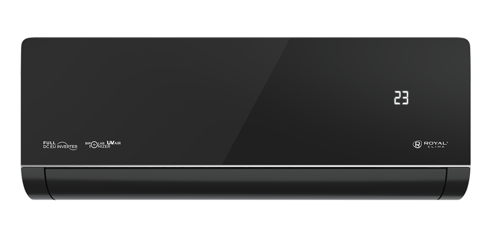 ROYAL SUPREMO NERO Full DC EU Inverter — премиальные кондиционеры, флагманская серия с изысканным дизайном. Глянцевая передняя панель делает внешний вид одновременно утонченным и роскошным. Одной из главных особенностей серии является система двойного обеззараживания воздуха. Сочетание UV-лампы и мощного биполярного ионизатора на 99 % уничтожает вирусы и бактерии.