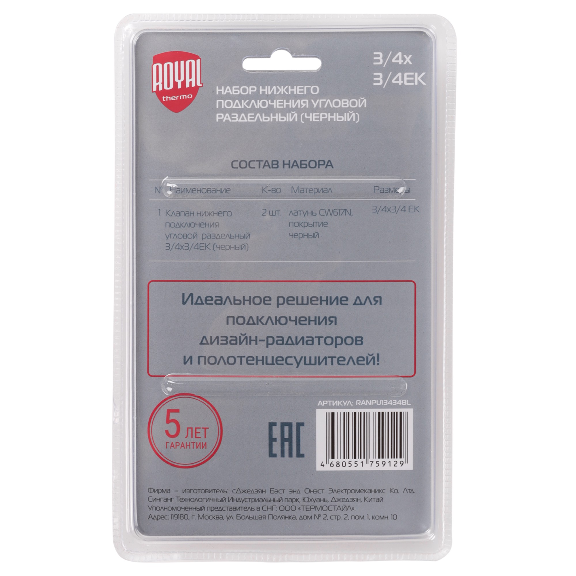 Наборы нижнего подключения Royal Thermo предназначены для подключения секционных радиаторов с нижними подключением. Клапаны являются запорными и могут использоваться для отключения прибора отопления от системы.