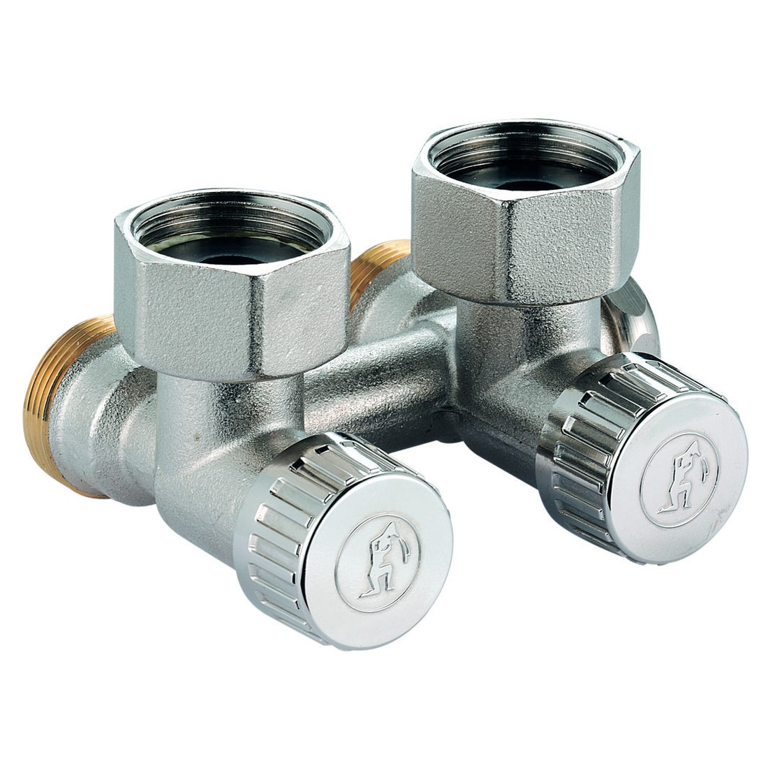 Узел нижнего подключения стальных панельных радиаторов, угловой, для одно- и двухтрубных систем. Содержит отсечной клапан для для перекрытия и балансировки, и байпасс. С возможностью слива.