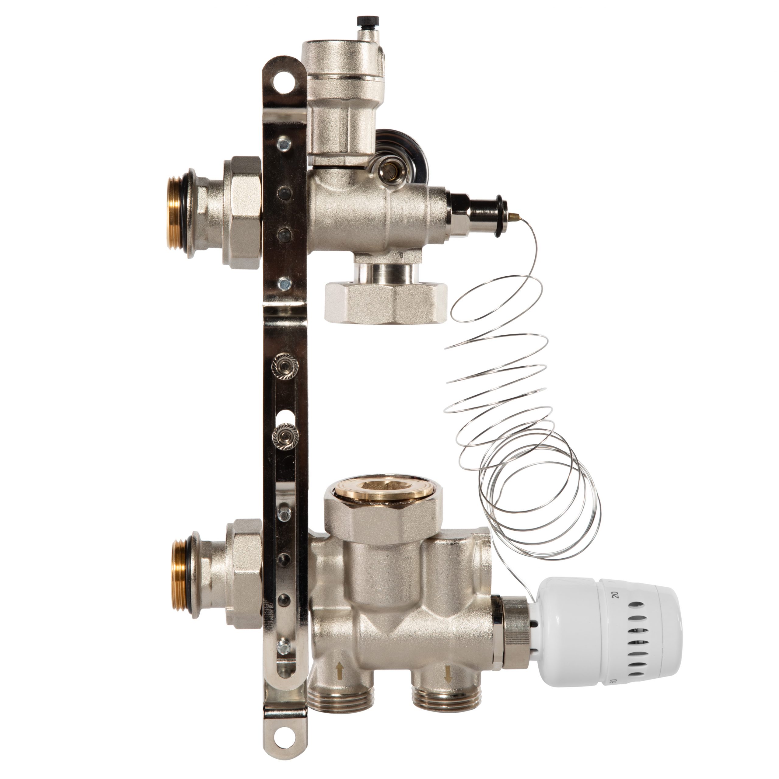 контуре поддерживается термостатическим вентилем с установленной на нём головкой с погружным датчиком.