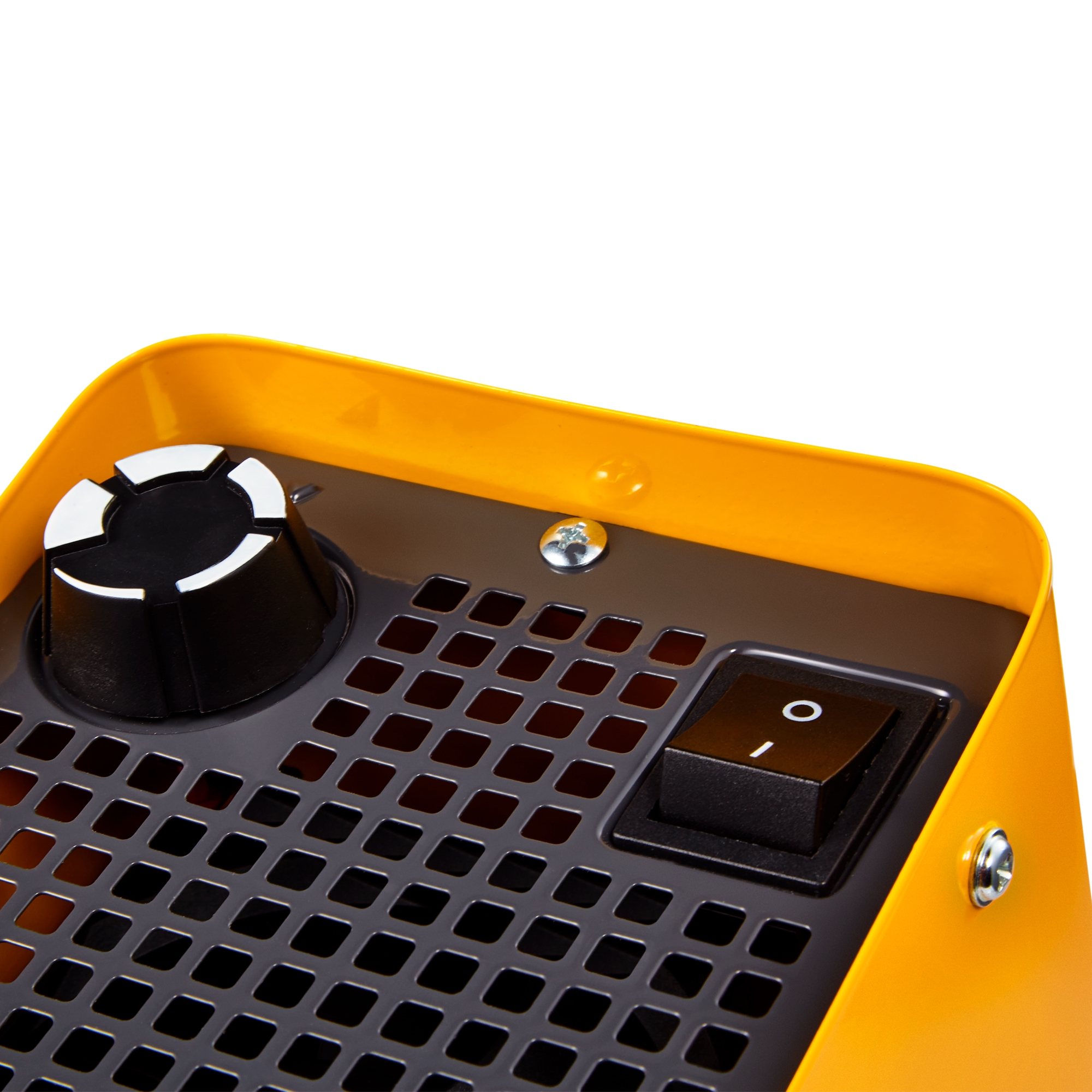 Сверхкомпактная тепловая пушка нового поколения в ударопрочном корпусе с антикоррозийным покрытием. В качестве нагревательного элемента используется керамический нагревательный элемент класса А, главной особенностью которого является экономия электроэнергии, получаемая за счет меньшего потребления мощности при большем нагреве.