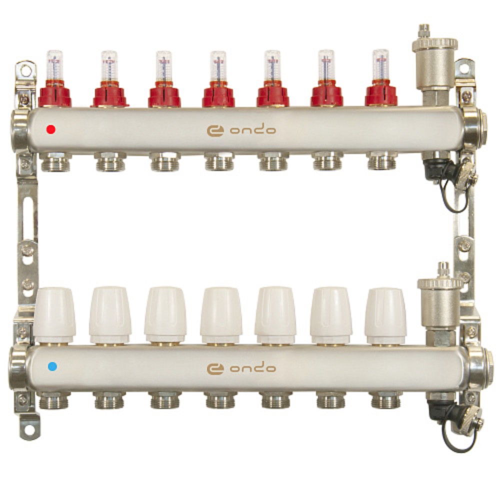 Группа коллекторная ONDO нерж сталь 7 вых. с автомат. воздухоотвод., расход. и термостат. клапанами