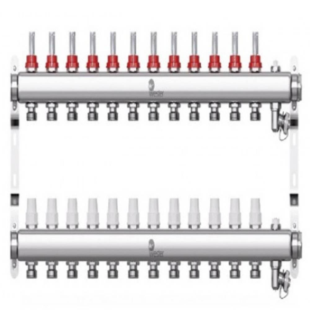 Коллекторы Wester W902 из нержавеющей стали с расходомерами и запорными клапанами предназначены для оптимизации и контроля распределения теплоносителя в системах радиаторного отопления и подогрева пола.